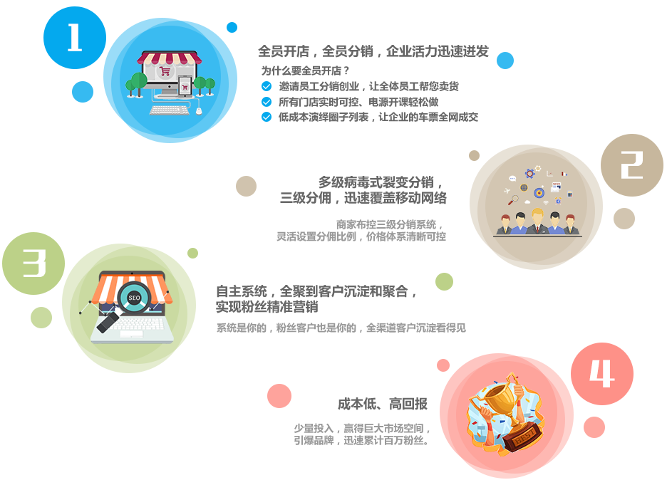 找更多的分销商帮忙卖货;吸引更多的分销商,让分销商把您的产品迅速的占领朋友圈及各种社交平台。
