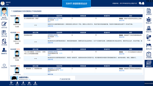 7、辅助诊疗:点击进入辅助诊疗,系统将从海量大数据中通过筛选、比对,选出一个或者多个与当前病患病情非常接近的相似病历来,共专家、医生、医务工作者参考、借鉴,从而实现辅助诊疗模块的功能。