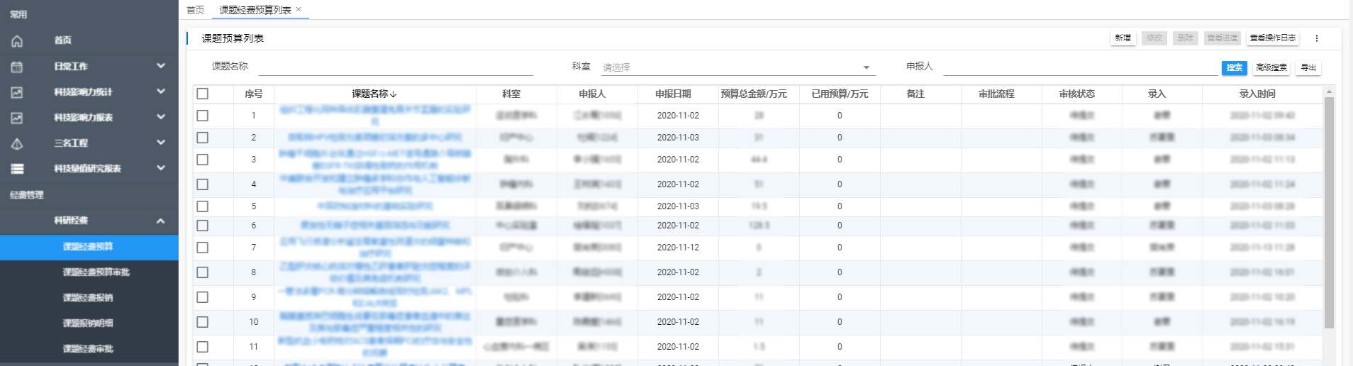 经费预算问题总是让人头疼,和智物联公司出于对科研事业的支持,为提高科研进度开发了科研管理系统(内含科研经费管理系统)根据研究课题,进行逐一审批,对科研管理经费流向,科研项目及参与人员等,做全过程把控,审批控制到位。<<<详细科研管理系统介绍>>>