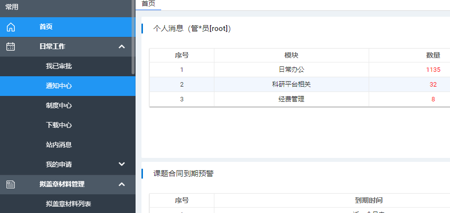 科研管理人员需求:科研管理者希望登录系统可以接收全院科研人员的成果统计以及项目申报信息等,系统支持在线审核课题、论文、科研成果,在线检查课题科研课题进展、课题经费使用情况;支持多方位查询科研信息,自动生成科研信息相关报表。