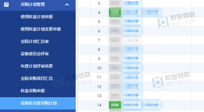 设备科将各科室的年度采购计划按月度、报价进行分类管理并提交审核。月度计划审核期间,设备科申请人可实时查看审核进程。
