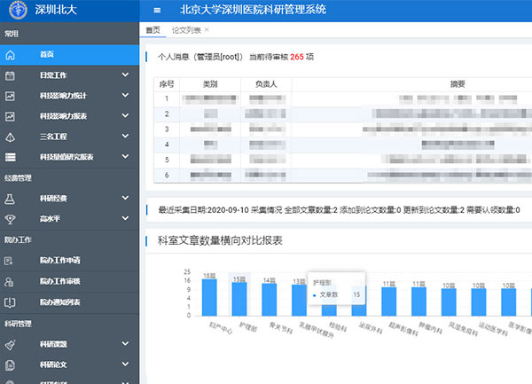 和智蓝颜gtv 很幸运与北京大学深圳医院成为了合作伙伴,当前科研管理系统已在北京大学深圳医院投入使用。